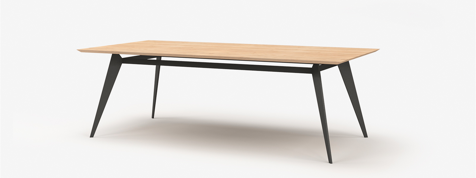 Stół AARD to ciekawy stelaż oparty na tradycyjnych formach. Mimo to wyróżnia go kształt nóg oraz sposób ich połączenia za pomocą cienkiego płaskownika tworzącego ramę wokół stołu!