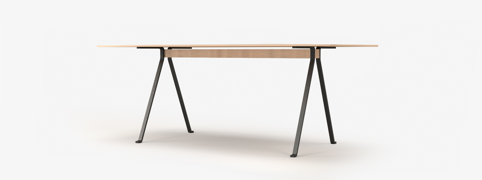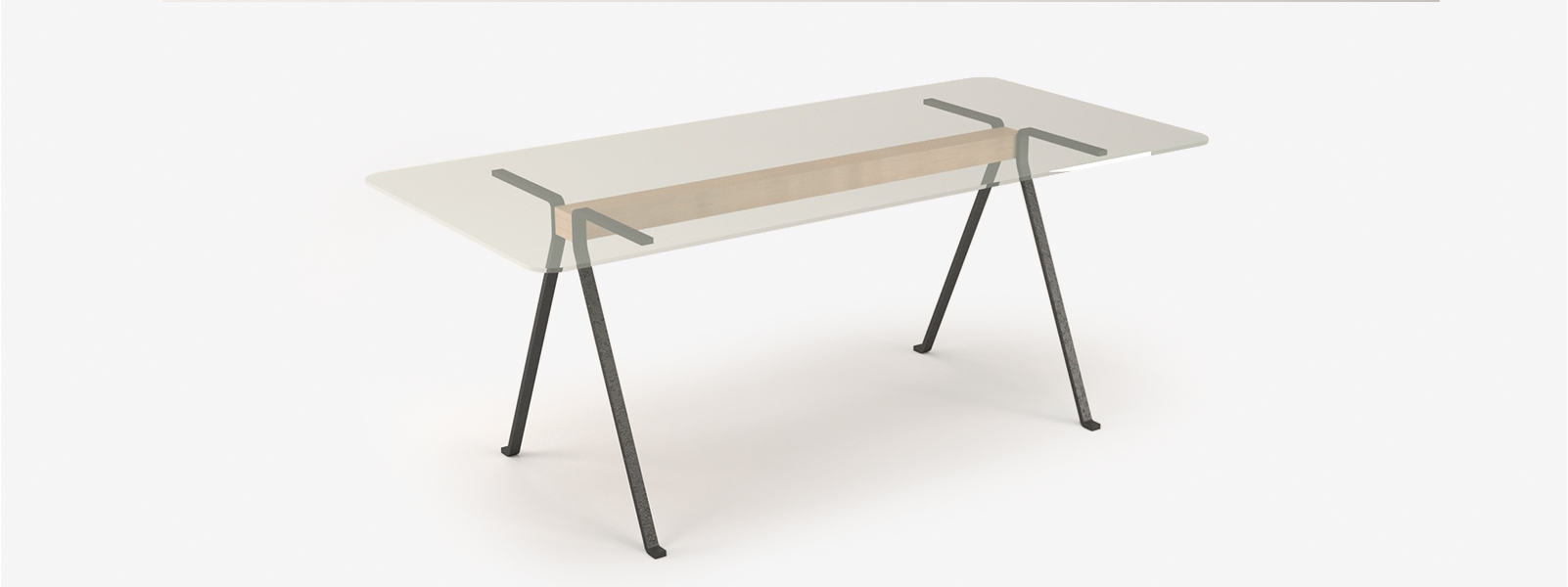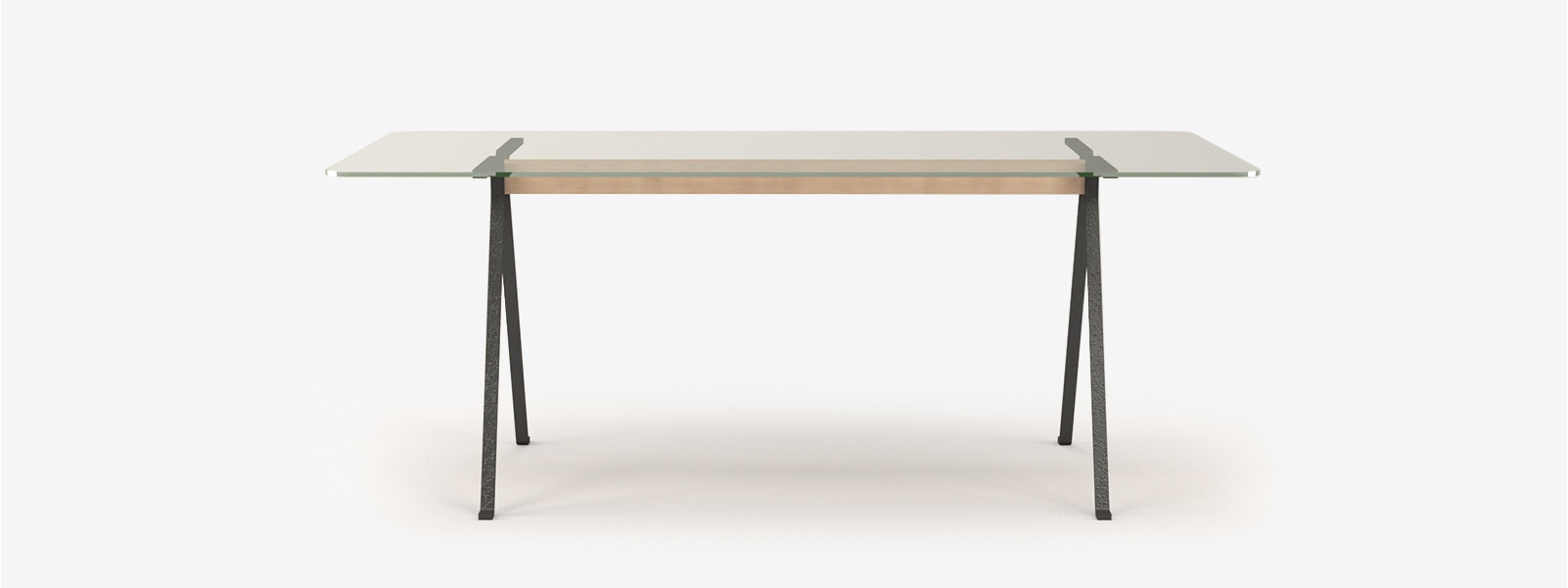 Cztery niezależne nogi połączone deską dębową tworzą dość niespotykaną formę stelaża. Prostota i funkcjonalność połączona z trwałością szkłą hartowanego to ciekawa propozycja nie tylko jako stół do jadalni ale również jako biurko.